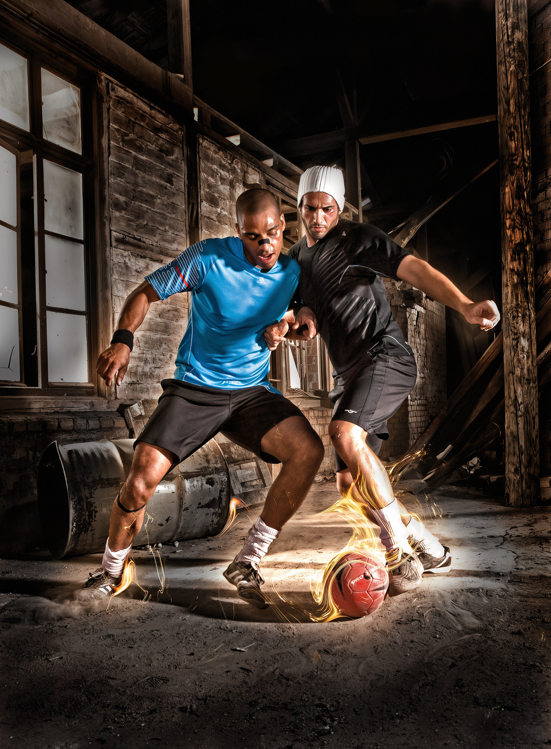Im Auftrag von INTERSPORT sowie im Rahmen eines Co-Marketing-Projekts mit den Kunden und Marken Adidas, Puma und der Eigenmarke Pro Touch habe ich für das Sportslife Magazin die redaktionelle Bildidee Urban Soccer Factory entwickelt und umgesetzt. Ziel war es, die Outfits der Marken in einem urbanen Street-Soccer-Kontext authentisch, dynamisch und lifestyle-orientiert zu inszenieren. Die Location: eine industrielle Fabrikhalle, die als Bühne für Action- und Lifestyle-Aufnahmen diente.